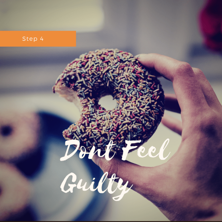 By feeling guilty you are more likely to suffer with low mood, which in turn leads to overeating. So don’t feel guilty that things aren’t perfect. Instead accept that this is part of your routine and one of those times that you will eat nice things with the knowledge that you will shortly be back on track.