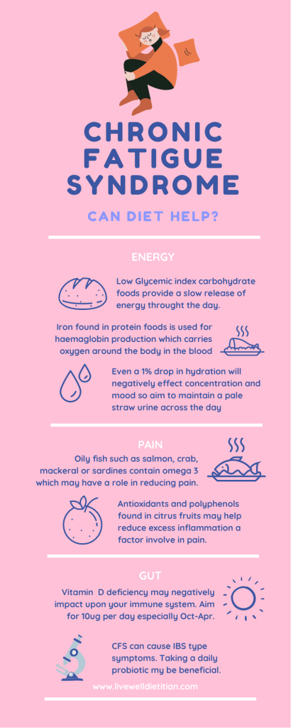 29th Jan 2021The Livewell DietitianLeave a Comment on Chronic Fatigue Syndrome Chronic Fatigue Syndrome Share this: Click to share on X (Opens in new window) X Click to share on Facebook (Opens in new window) Facebook Like Loading...